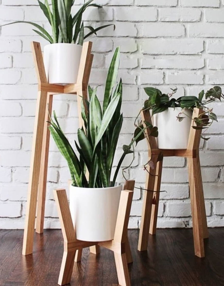 استند گلدان سه تایی چوبی مدل تولیپ